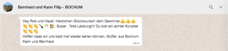Een driekoppige jury - Hanekamp, Westendorp en de uitbater van het Grand Café - koos na lang wikken en wegen een winnaar. Rob Siewe won met zijn acrylverf schilderij van een landschap met hoog daarboven zwevend een luchtkasteel met een ophaalbrug. "Die dromen moeten van mij blijven", vond de schilder. "Dus daarom heb ik die ophaalbrug gemaakt in de wolken en die heb ik opengezet, zodat niemand erbij kan."